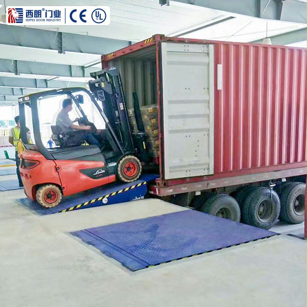 SEPPES西朗门业装卸货平台 Dock Leveler(卸货平台/ 调节卸货台/ Dock Plate/ Dock Ramp/ Loading DockLeveler)通过控制系统、电动液压动力单元、调节板以及舌板联合工作,可以有效调节不同运输车辆车厢底板与月台的高度差,在车辆与月台之间形成过渡搭板,使得叉车、货车能在一个平坦平面上装卸货物,提高装卸效率。动额定载荷6.3T,静额定载荷13.6T。两侧体护挡板,自动伸缩、确保安全。配有可靠的液压控制速度保险阀门和防坠落阀门安全保护装置。