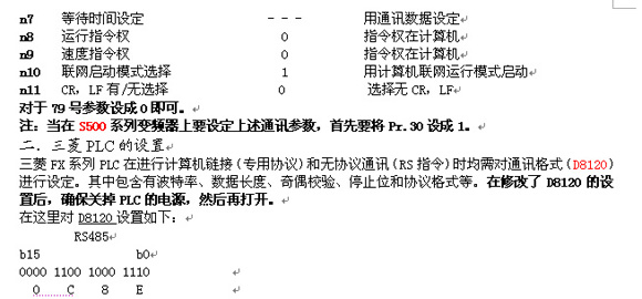 PLC和变频器之间进行通讯,通讯规格必须在变频器的初始化中设定,如果没有进行初始设定或有一个错误的设定,数据将不能进行传输。