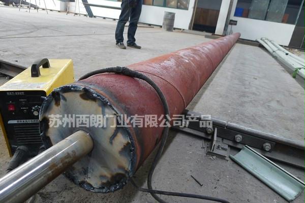 西朗大型钢制卷帘门采用加厚型螺旋焊接8寸管;下图为8寸卷帘门大梁管:
