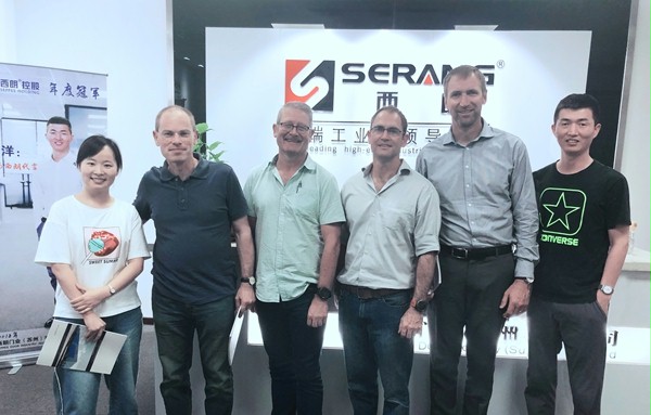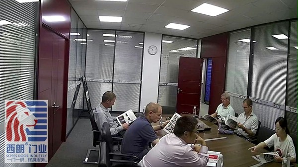上图为:外企客户在苏州西朗门业会议室技术交流