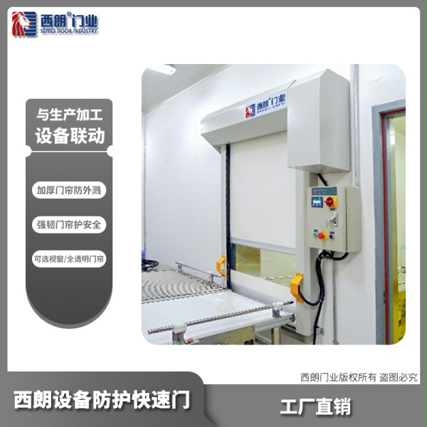 环保机械设备包括了过滤除尘设备、污水处理设备、噪音防治设备、消毒防腐设备等,在生产这些设备的时候,少不了需要切割、电焊、铸造等环节出现。那么在生产机器上安装防护门,可以有效阻挡焊渣、灰尘、有害弧线等物质,一方面保护机器切割时的精准度,另一方面还可以保护工作人员的人生安全。机器防护门可以与焊接机器通信,完全的自动化模式开启关闭,在门帘材料上选择厚度更厚、韧性更强的基布,起到了阻挡有害物质的隔离。