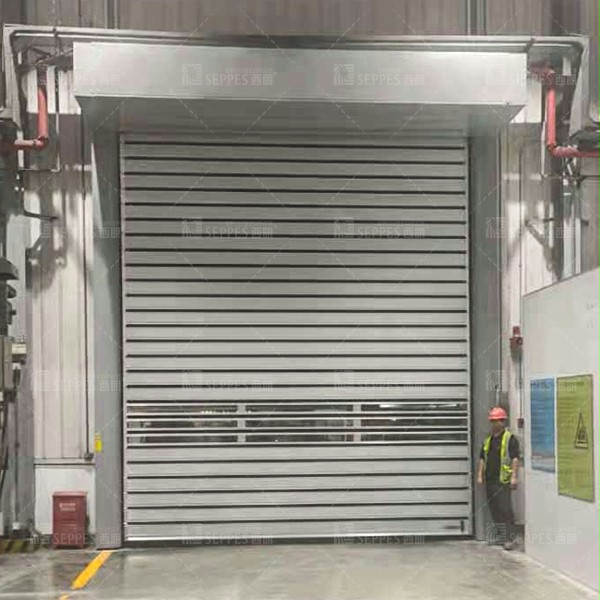 车间硬质快速卷帘门是集保温、节能、密封、坚固、高效、抗风于一体的新型金属快速工业门,开启速度每秒最高可达2.35米,适用于需要频繁高速的物流通道。门板厚度为40mm,内部填充聚氨酯保温材料,具有保温好,重量轻、强度大、抗冲击等特点,抗风等级≤12级。
