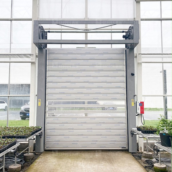 智能温室硬质快速门是集保温、节能、密封、坚固、高效、抗风于一体的新型金属快速工业门,开启速度每秒最高可达2.35米,适用于需要频繁高速的物流通道。门板厚度为40mm,内部填充聚氨酯保温材料,具有保温好,重量轻、强度大、抗冲击等特点,抗风等级≤12级。