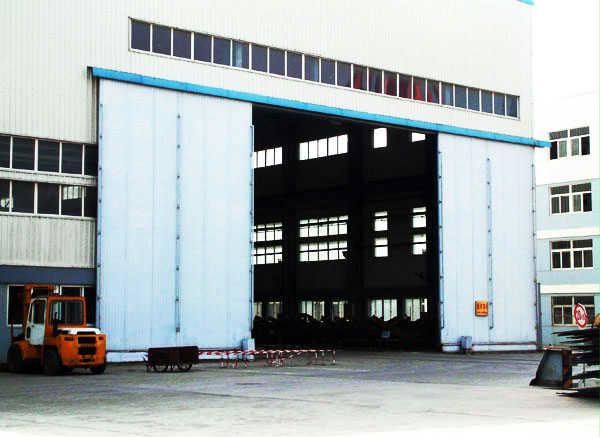 机械厂房用平移门能够适合大型机械所需要的大洞口,同时具有抗风抗油污的功能。